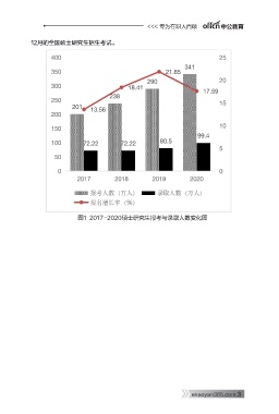 <<< 專為在職人而碩 中公教育 12月的全國碩士研究生招生考試。 圖1 2017-2020碩士研究生報考與錄取人數變化圖 ekaoyan365.com 3